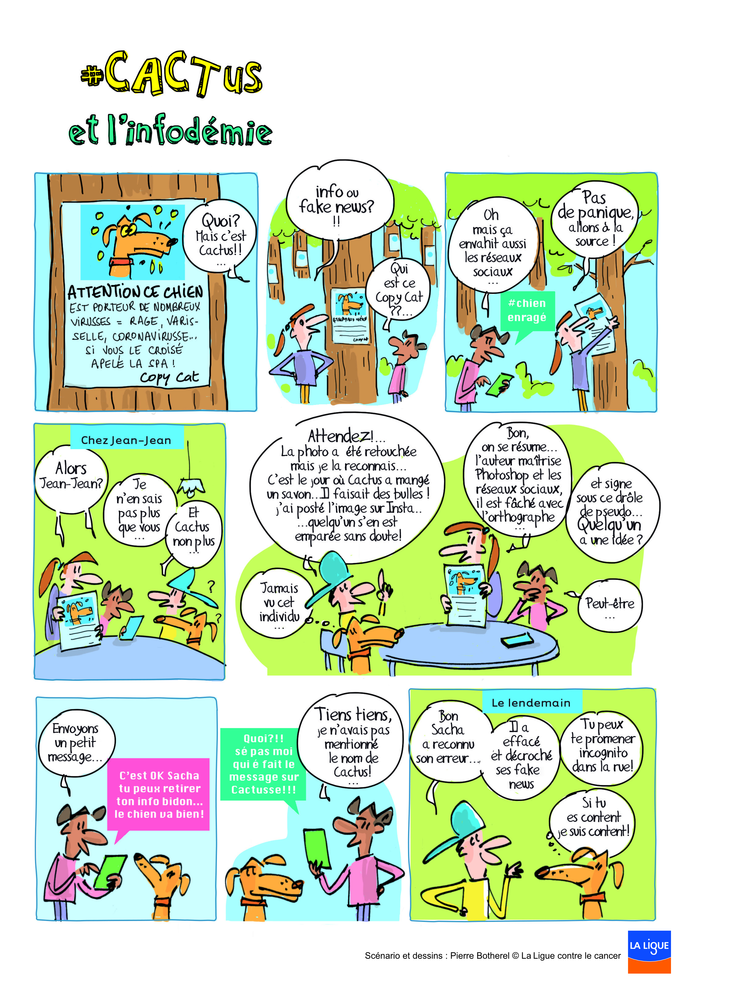 Mais pourquoi Cactus le chien fait-il la une des journaux locaux et le buzz sur les réseaux sociaux ? La réponse en BD !