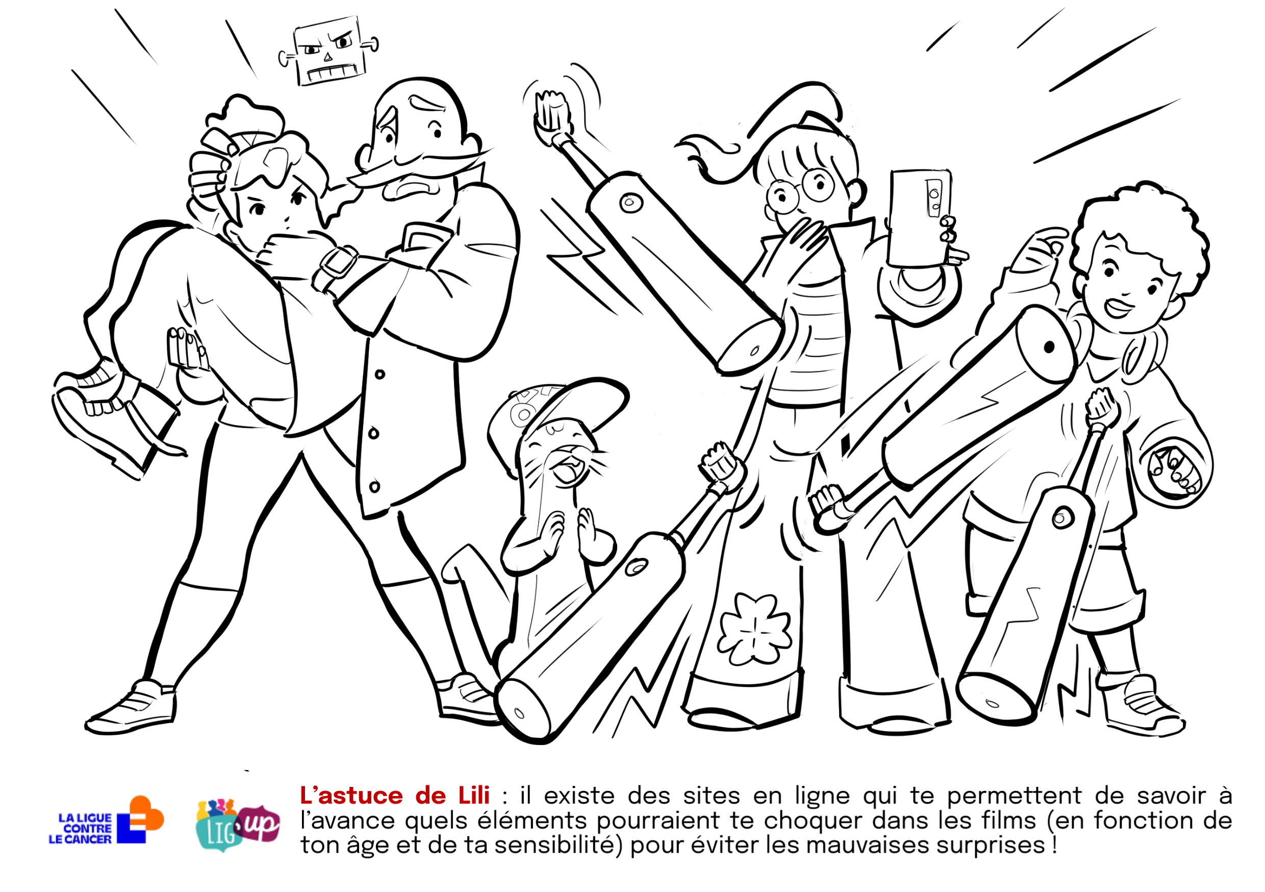 Lili est une petite loutre très curieuse ! Elle est fascinée par les humains et tous leurs appareils à écrans. Non loin de chez elle, vivent les Martins, une famille ultra-connectée ! Lili va quitter sa rivière pour vivre 3 jours avec la famille Martin, pour apprendre à vivre comme les humains. Mais attention aux écrans qui peuvent vite devenir très addictifs pour une petite loutre (comme pour nous !). Découvre les aventures de Lili la loutre et de la famille Martin à travers ces coloriages à imprimer et passe un moment de détente loin des écrans !