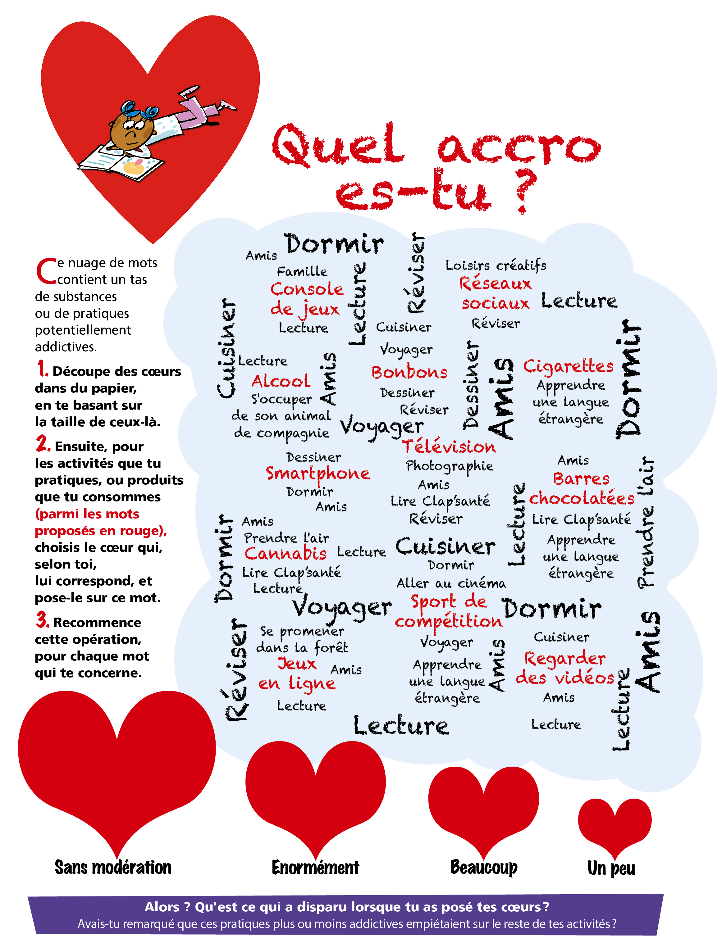 Il arrive que certaines activités plus ou moins addictives prennent de plus en plus d’importance dans notre vie. Fais le point sur les activités que tu pratiques pour découvrir quel accro tu es.