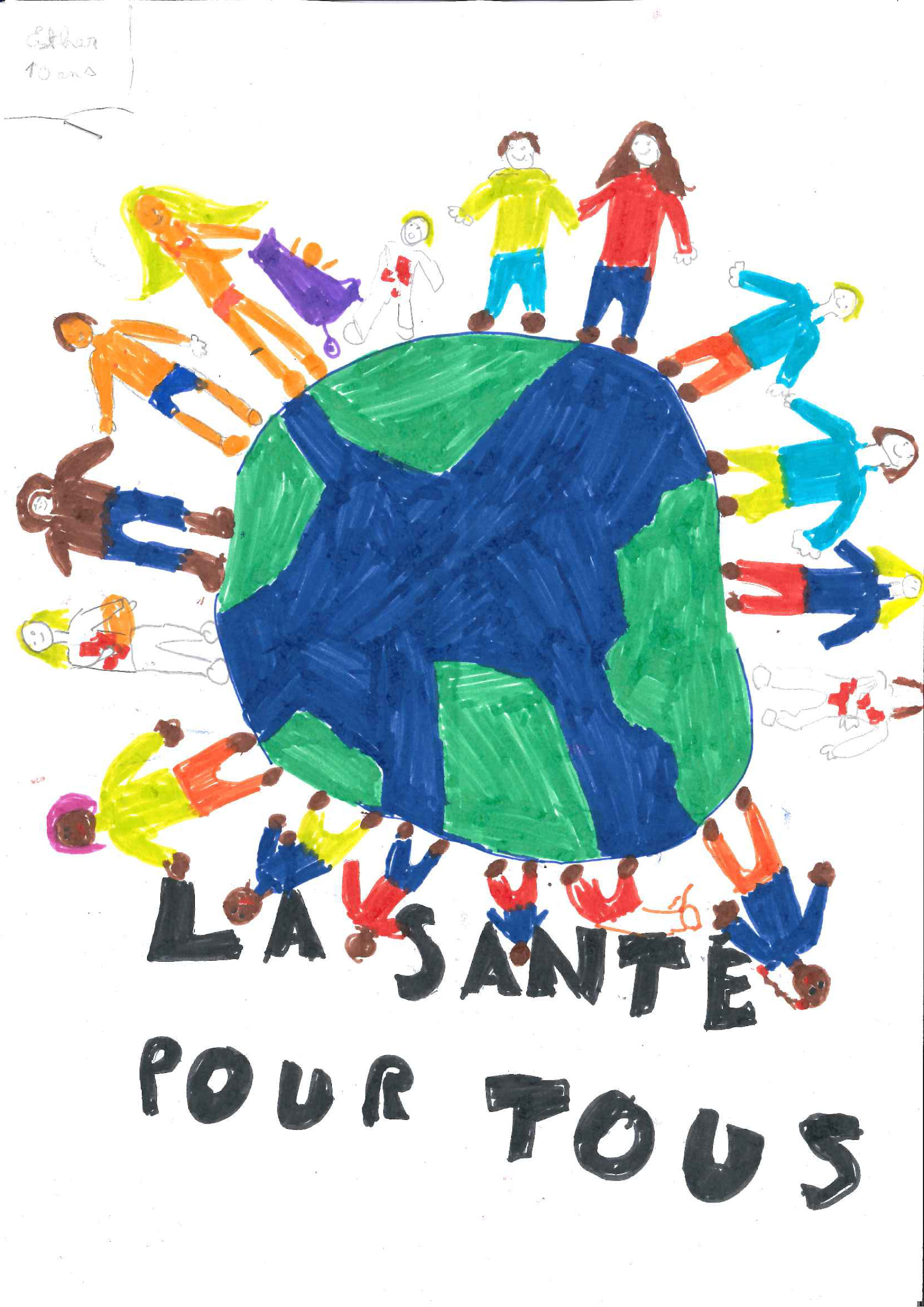En France : Pour la santé de tout le monde, je ferais construire des petits habitats pour ceux qui sont à la rue, le médecin serait gratuit, on les aiderait à chercher un travail… Tout ça dans le même délai. Dans les magasins nous donnerions les produits proches de la date de péremption car pour pouvoir être en bonne santé il faut un travail pour payer les soins et la nourriture.